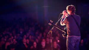 man standing in the middle of field